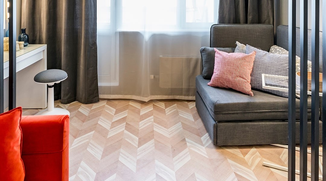 Клеевой пробковый пол Chevron Cream CORKSTYLE, производится в Швейцарии. Приклеивается на ровное, чистое, жесткое и стабильное основание с помощью специального клея. Защищен специальным лаком горячего нанесения HotCoating, который придает пробковым полам особую износостойкость коммерческого класса, сопоставимую с 33 классом в ламинате. Дополнительно можно покрывать эластичным полиуретановым лаком, при этом дополнительно нужно использовать специальный грунт. Клеевой пробковый пол не боится воды и подходит для влажных помещений.