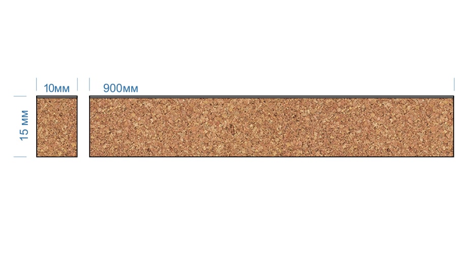 Пробковый компенсатор W10x15x900 мм используется для организации примыканий клеевых напольных покрытий, для компенсации влаго и терморасширений. Используется как альтернатива порогов и плинтуса. Фиксируется на основании с помощью клея.