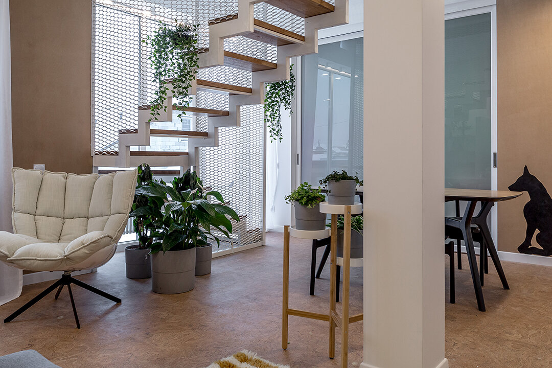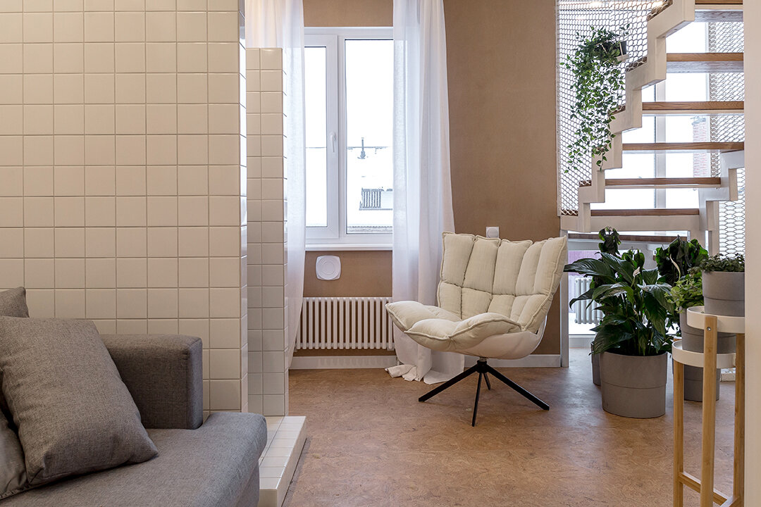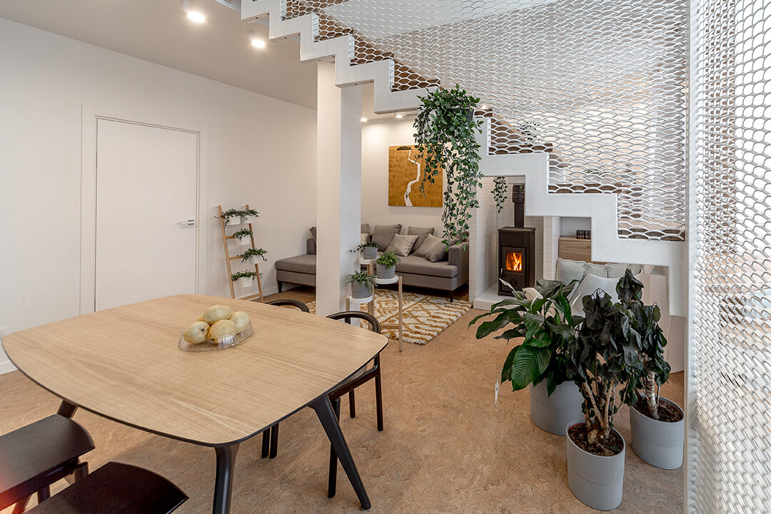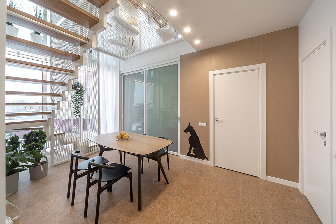 В проекте представлен пробковый пол на замковом соединении Madeira из коллекции Eco Cork от Corkstyle.