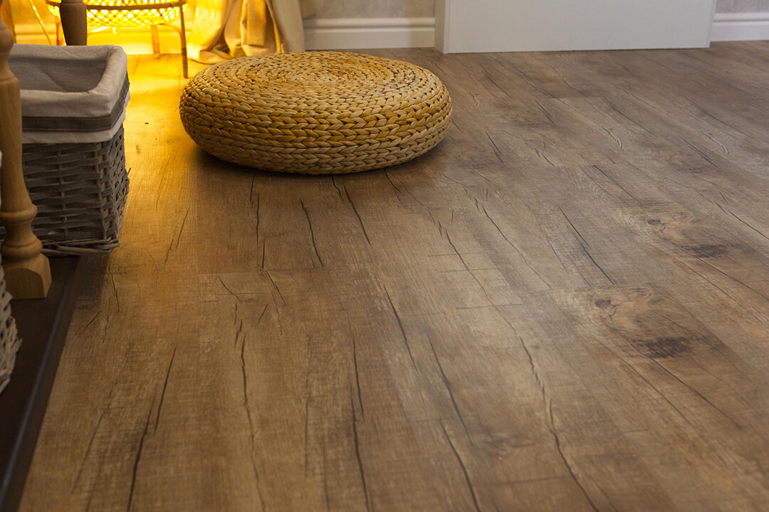 В этом проекте использован виниловый пол с фактурой древесины брэнд Vinyline.
