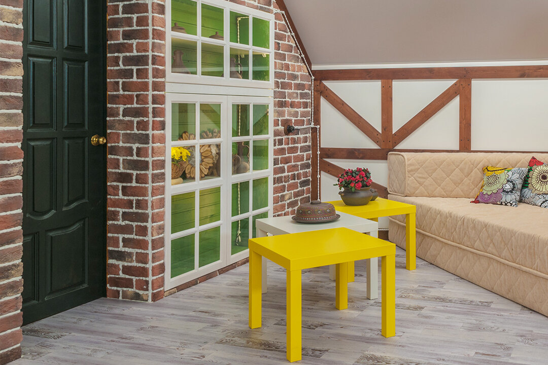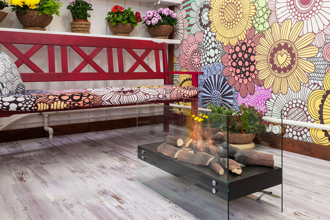 И по фотографиям видно, что лофтовый пол может подойти к интерьеру и в других стилях. В этом холле потертые дощечки отлично соседствуют с элементами фахверка, цветочным принтом и яркими деталями. Недаром так часто наши клиенты приобретают именно его. Сначала он был создан для стиля лофт, а в жизни оказался универсальным!