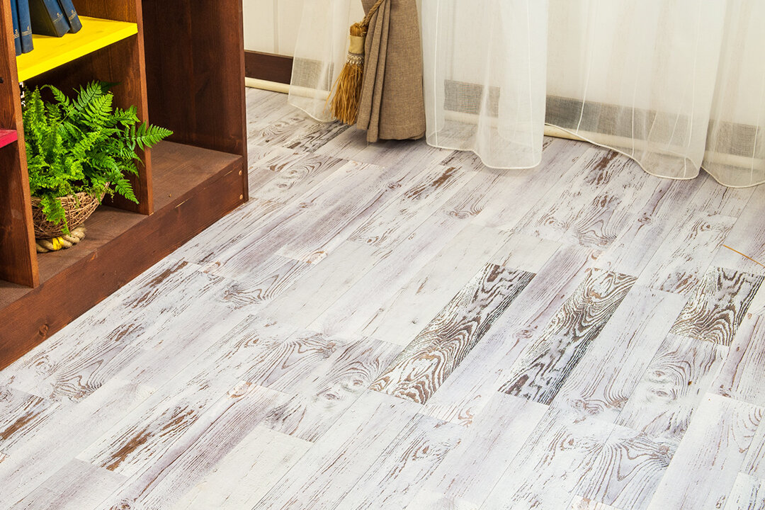 Пол выглядит как дощечки, покрытые белой краской и немного потертые. Этот рисунок очень практичный, особенно для дачи.