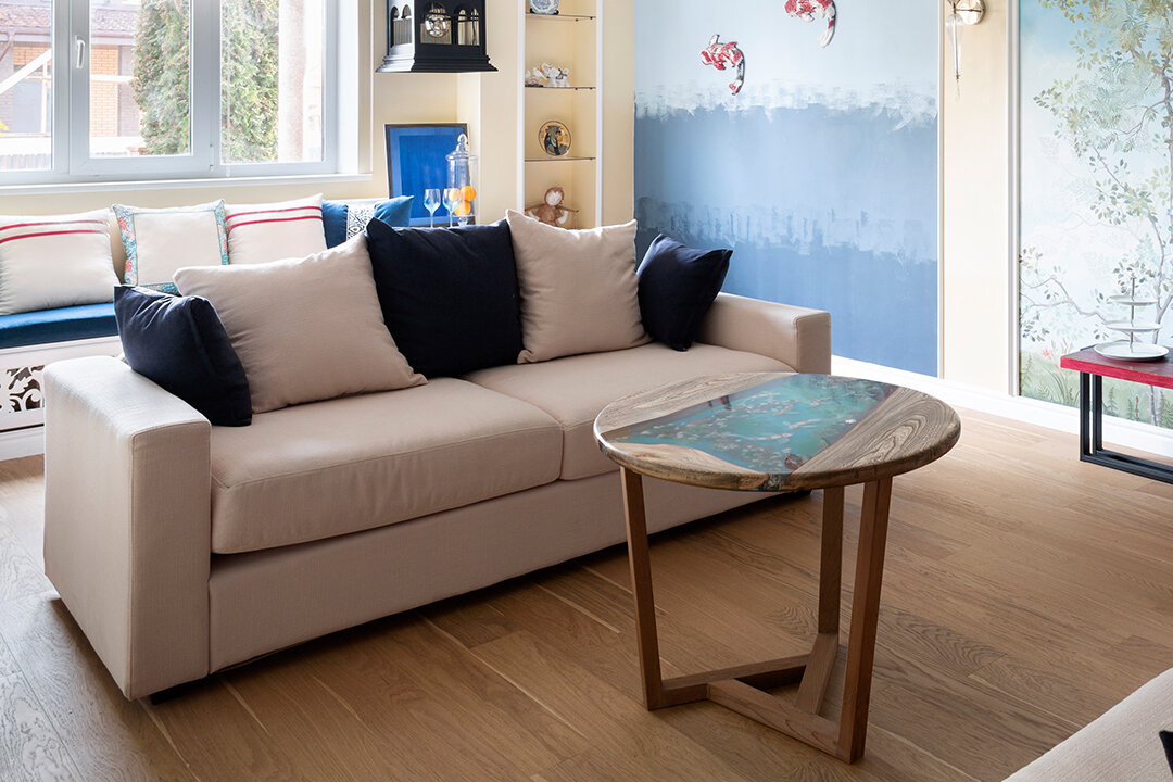 Паркетная доска Auswood впечатлила мастеров "Фазенды" легкостью укладки, хозяев - красотой, а ведущего Тимофея Пронькина надежностью в эксплуатации. Дизайнер Диана Миронова стыковала паркет с плиткой и с этой нелегкой задачей специалисты справились на отлично. Стандартную гостиную удалось перевоплотить в уютное, самобытное, функциональное пространство для комфортного времяпрепровождения и приема гостей. В проекте использовалась паркетная доска Auswood, дизайн Sun Oak.