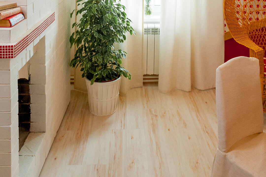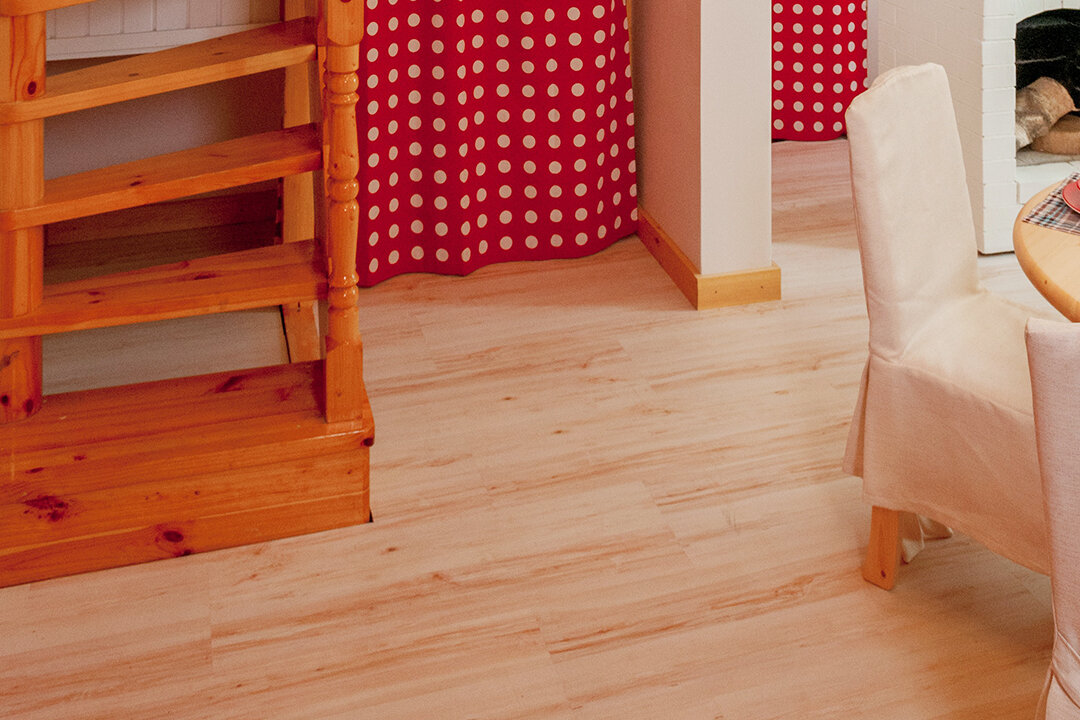 Здесь уложен пробковый пол с печатью из коллекции Wood