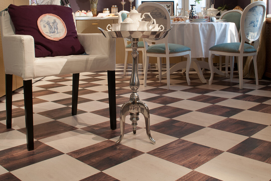 Сложно представить в этом интерьере какой-то другой пол – ведь натуральное дерево уложить так довольно сложно и дорого, а найти плитку с рисунком под дерево еще сложнее. Благо, что существует пробка с прямой печатью, которая выглядит как дерево, а уложить её можно как плитку!