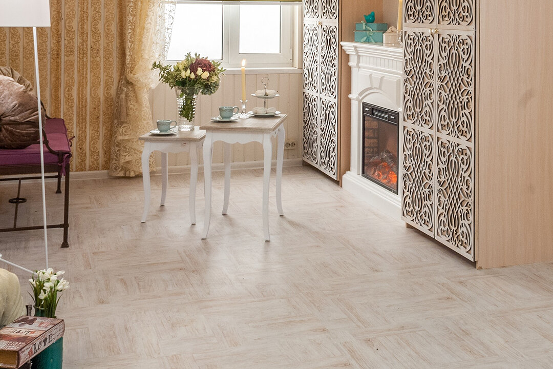 Наборный паркет не подходил, поскольку это дорого и долго. Потому дизайнер выбрала идеальную альтернативу – пробковый пол с напечатанным изображением наборного паркета. Это уникальное покрытие – пробковый пол с печатью. Он может выглядеть как угодно – бетон, дерево, трава, камни, старые доски, карта мира, текстиль и тд – и при этом сохранять все лучшие свойства пробки. Ее теплота и хорошая звукоизоляция очень важны для спальни. Потому мы решили сразу несколько задач, уложив пробковый пол.