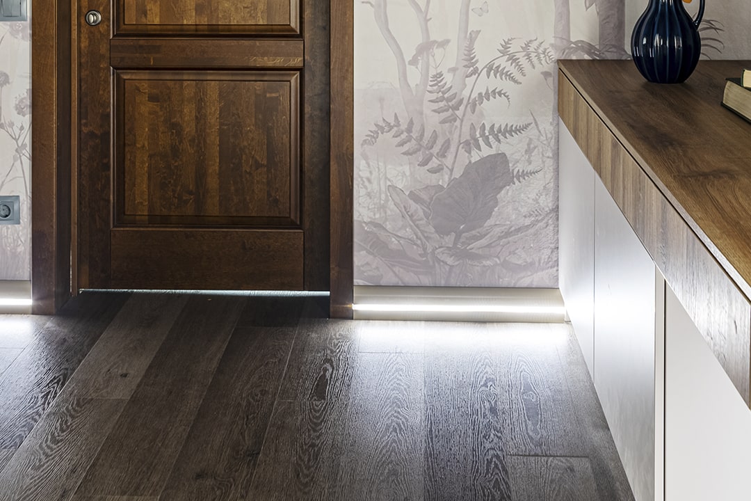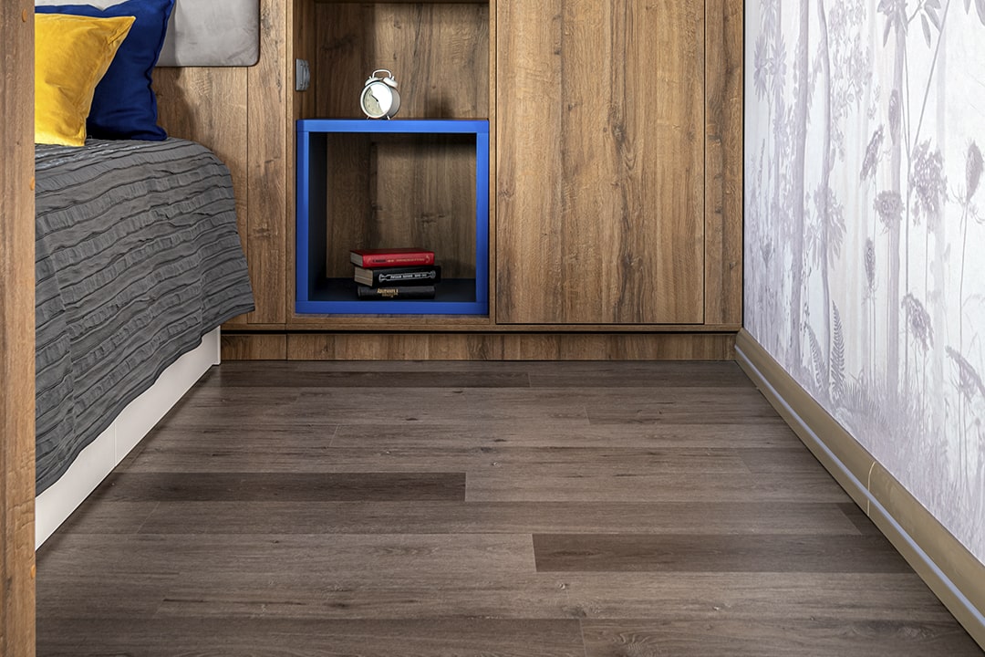 В проекте уложен кварц-виниловый пол FLOORFACTOR