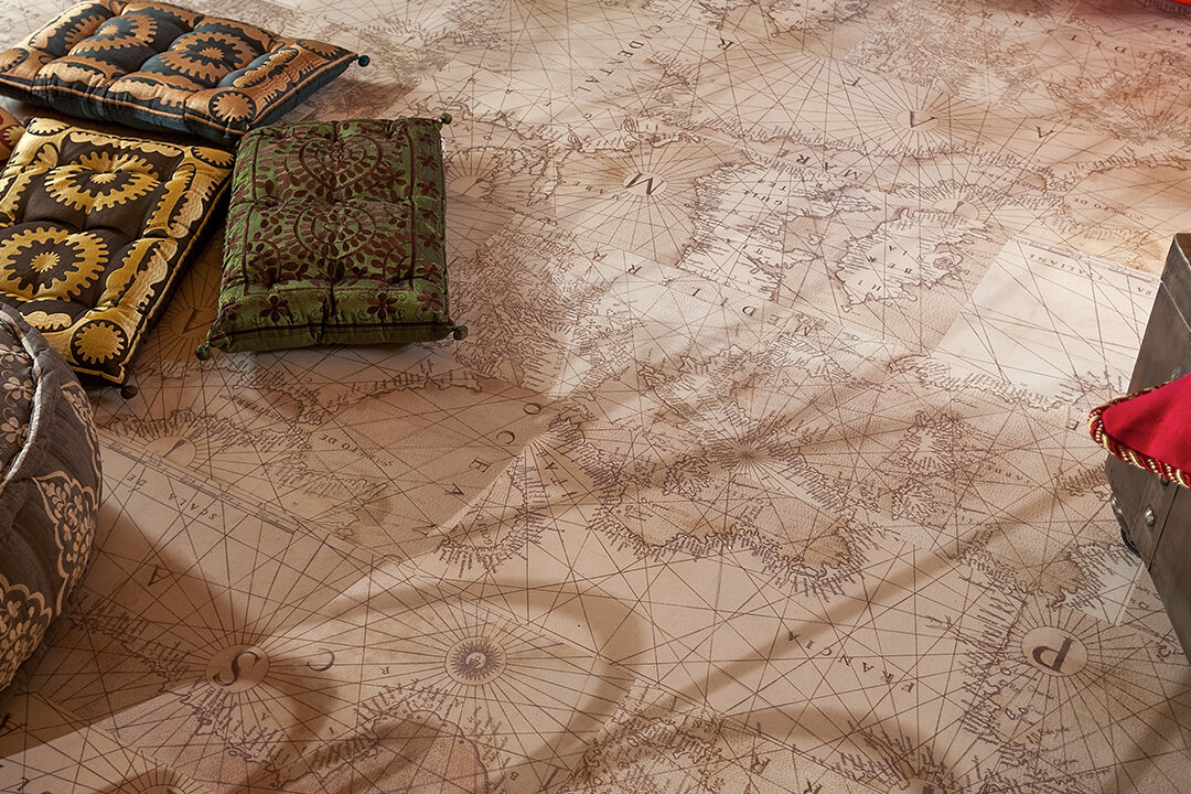 Старинная карта мира на полу и мансарда сразу становится источником вдохновения!