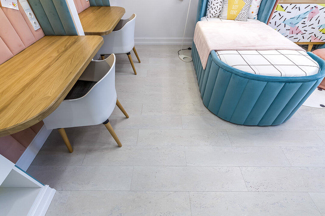 В проекте использовался пробковый пол Comprido Milk из коллекции Cork Pro. Его благородный спокойный оттенок уравновешивает яркую мебель, поддерживает цвет стен и другие эффектные детали интерьера. Текстура натуральной пробки вносит свой дополнительный шарм. И главные характеристики, которые создают традицию в выборе пробкового пола для детских комнат — это шумоизоляция и тепло.