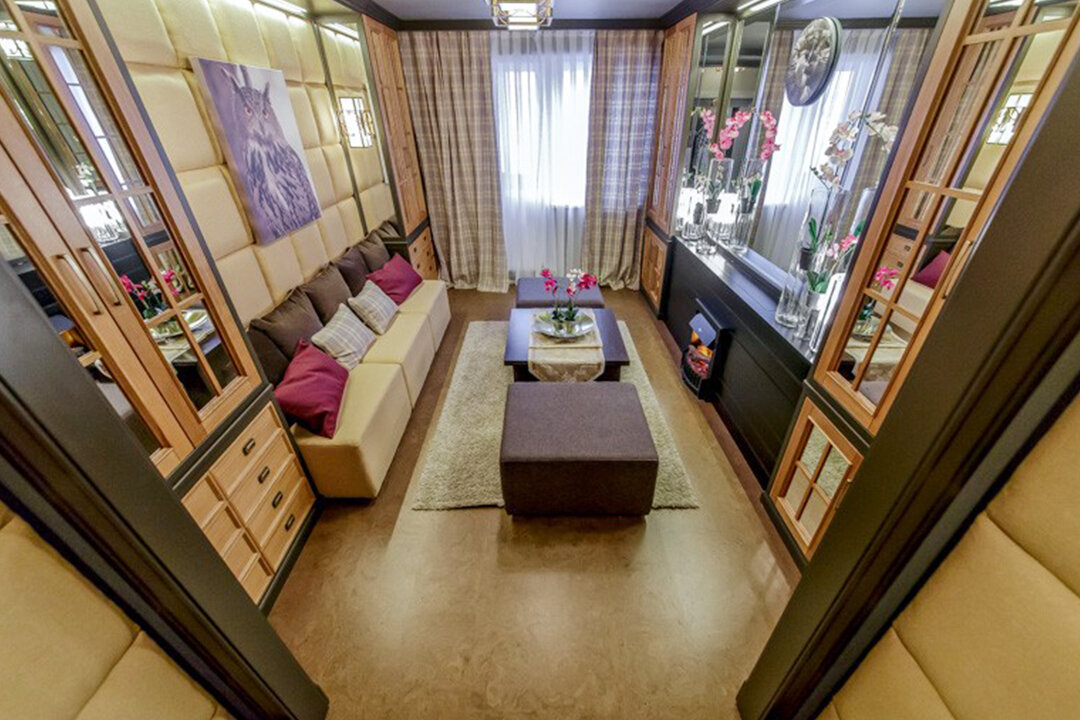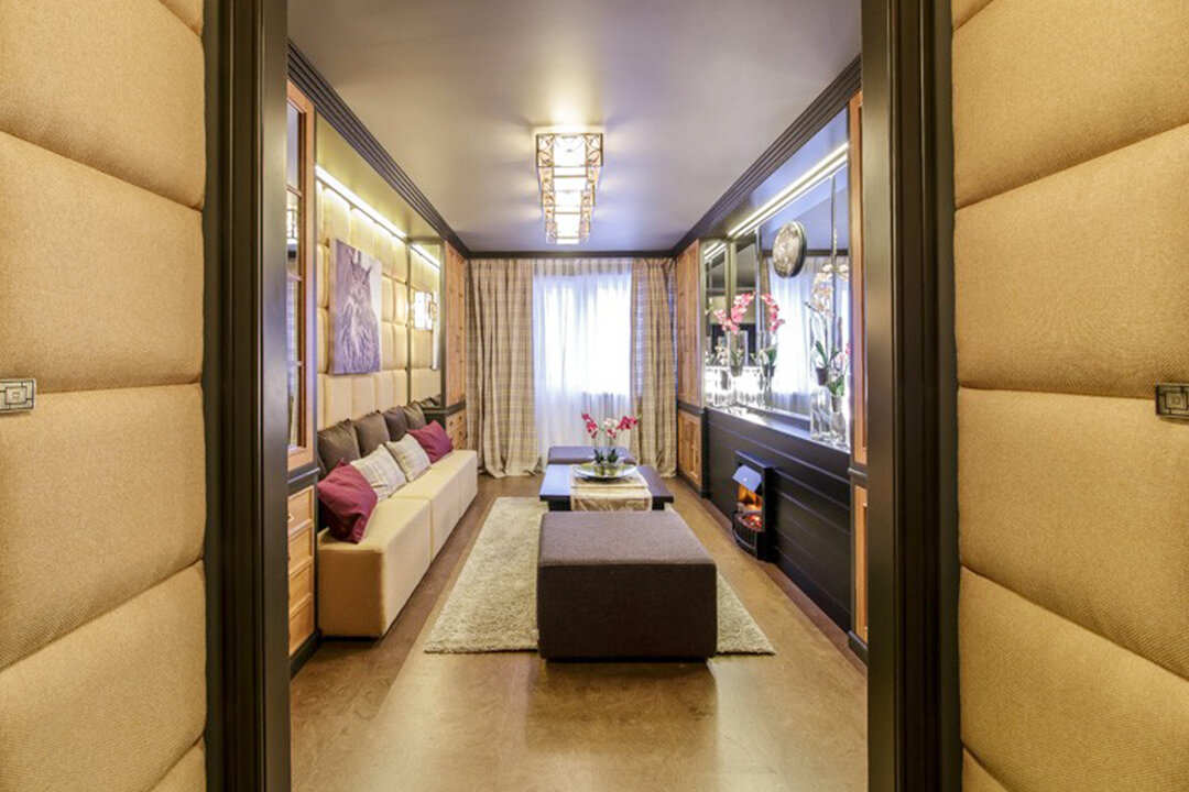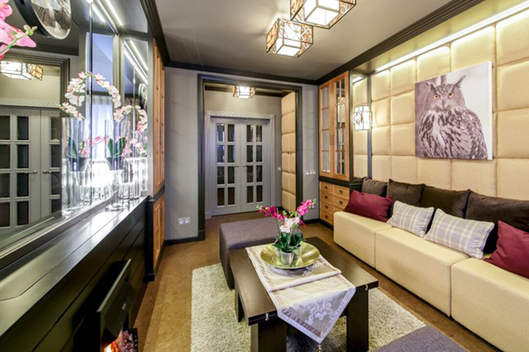 Дизайнер придумывала гостиную для большой семьи, которая очень любит играть в настольные игры. Раунды всеми любимой игры Что? Где? Когда? здесь происходят постоянно. И помимо светлой отделки и множества мест хранения дизайнеру необходимо было найти теплое и бесшумное при ходьбе напольное покрытие. К тому же хозяева квартиры очень просили улучшить звукоизоляцию.