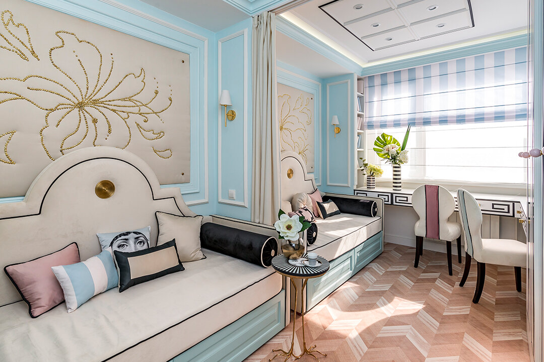 Задачей дизайнера было создать пространство, в котором бы девочке подростку 14 лет хотелось играть, творить, мечтать.