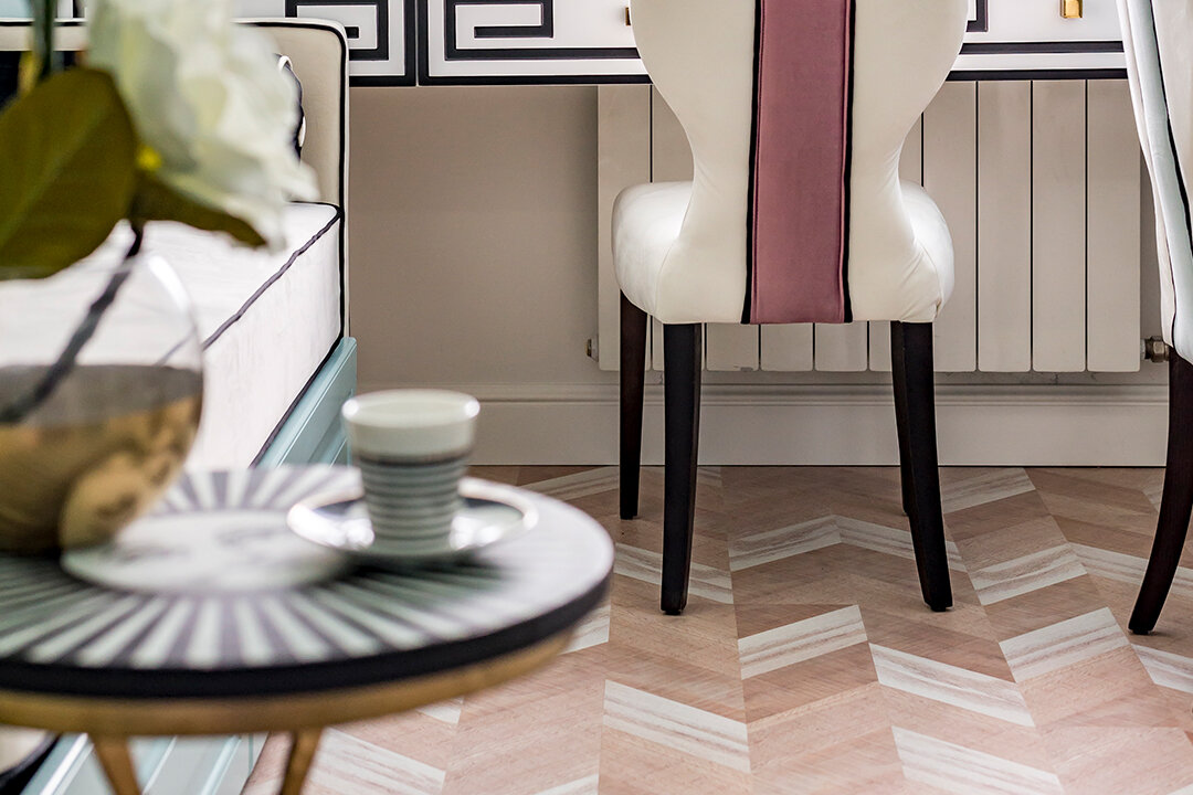 В проекте уложен пол из коллекции Chevron