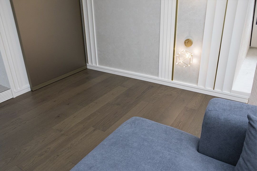 Актуальная концепция натуральности интерьера поддержана паркетной доской дизайна Oak Sardinia из коллекции Travel. Это надежный и красивый материал, привлекает фактурой, окутывает теплом и уютом все пространство. Даже в прохладное время года хозяева и гости могут ходить по полу босиком — ведь натуральная древесина теплая и приятная на ощупь.